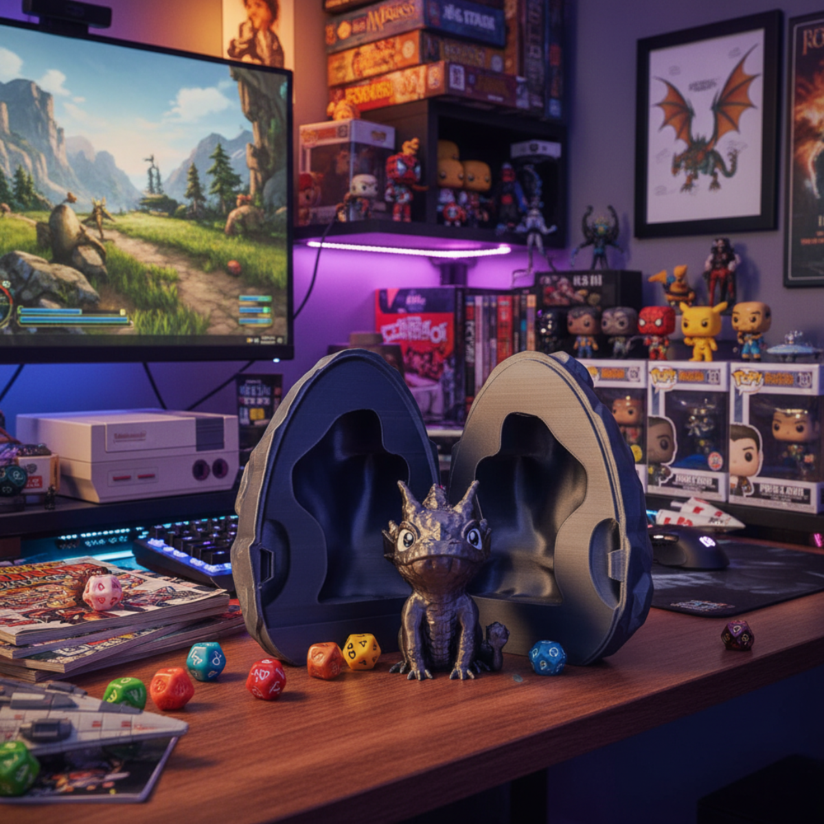 O modelo Stone possui textura detalhada que remete a rochas e escamas petrificadas, trazendo um visual rústico, místico e imponente. Ideal para fãs de fantasia, RPG, colecionadores e decoração geek.